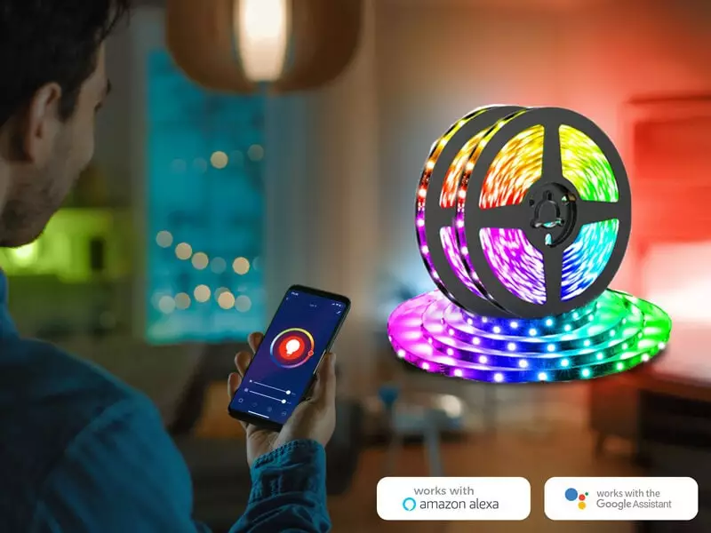 Smart LED-strip fra Denver, som du styrer med en app! Tænd, dæmp og skift lysets farve med din smartphone, uanset hvor du er. Wi-Fi-lysslangen er 5 meter lang, har både hvidt og farvet lys og er kompatibel med Amazon Alexa og Google Home.