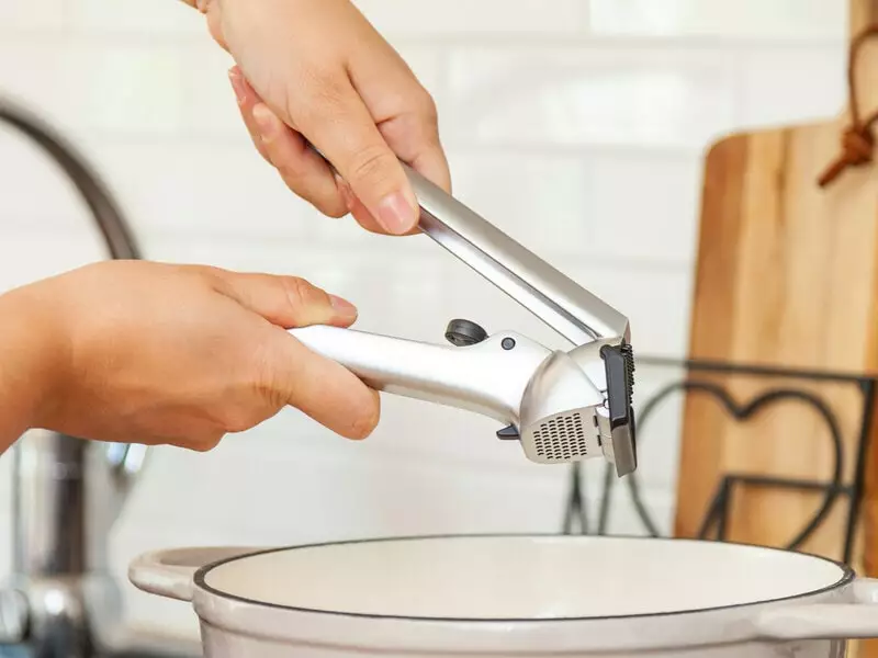 Ikke flere stinkende fingre og timelange opvaskesessioner! Garject presser de uafskallede hvidløgsfed, skraber sig selv ren og skyder skalresterne direkte i skraldespanden!