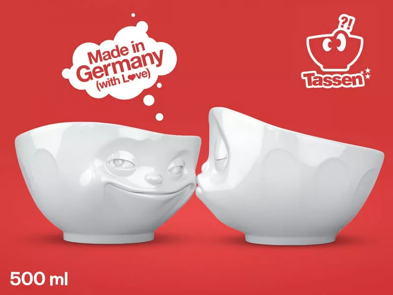 Hvilken skål er du i dag? Giv dit service liv med skåle, der har forskellige ansigtsudtryk. I højeste tyske kvalitet. Kendt fra animerede film på Youtube.