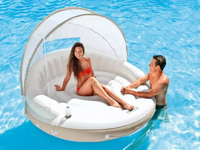 Maksimér afslapningen i poolen og sørg for strandhængeri deluxe med din egen badeø! Canopy Island fra Intex er en stor og rund bademadras med aftagelig solbeskyttelse og plads til to voksne. Perfekt når du gerne vil chille i skyggen, men alligevel kunne p