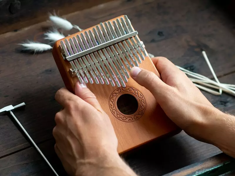 Bliv en ørn til at spille tumpiano med instrumentet kalimba! Dette sjove instrument er egentlig mere slagtøj end et klaver, og du spiller de 17 metaltoner ved at knipse på dem med tommelfingrene.
