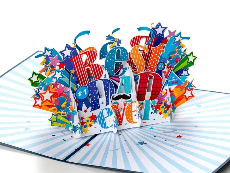 Har du alletiders bedste far? Hyld ham med et farverigt 3D-kort, hvor motivet BEST DAD EVER dukker op, når han åbner kortet! Leveres med kuvert.